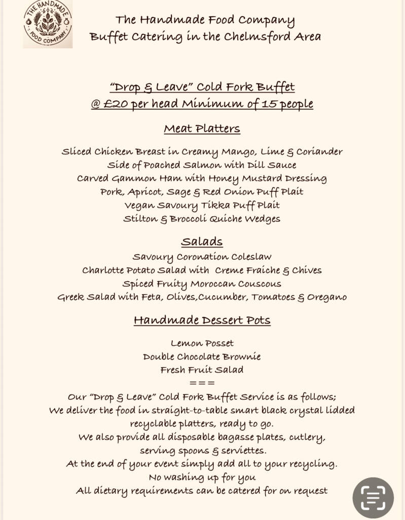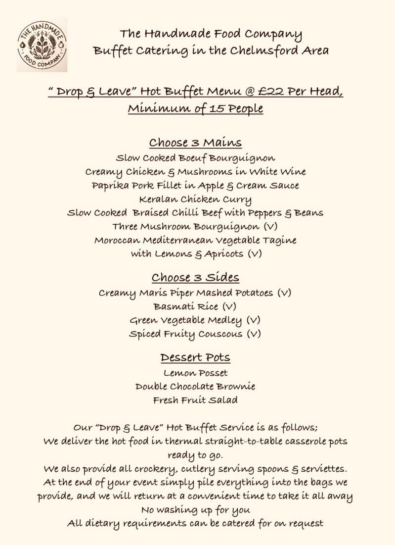 The Handmade Food Company, your Chelmsford buffet catering specialists, are thrilled to introduce our new 'Drop and Leave' buffet service! Enjoy delicious, hot food delivered directly to your event, making catering easier than ever.